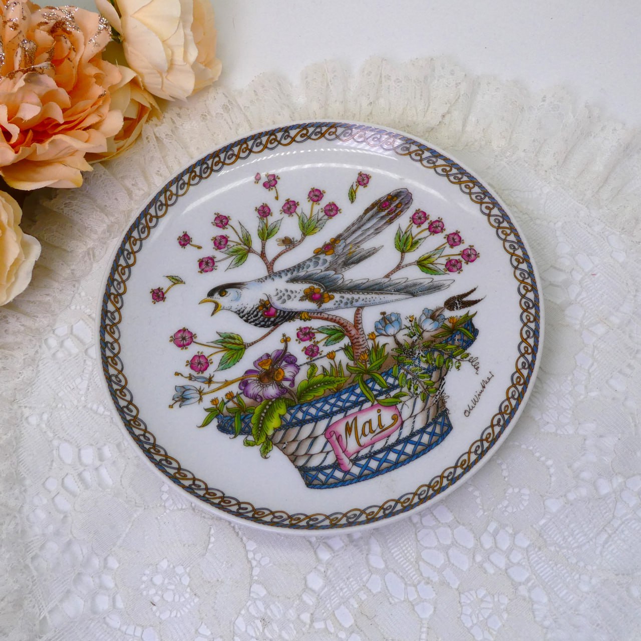 Тарелочка с нежной деколью и объемной каймой