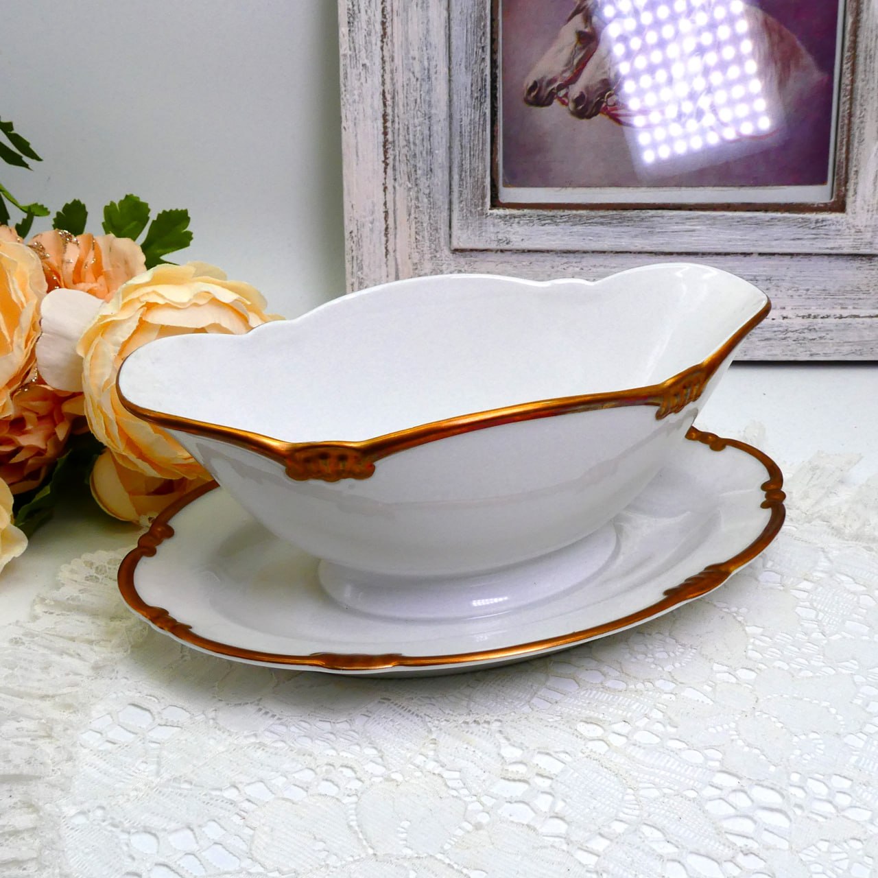 Антикварный соусник с цветочной каймой