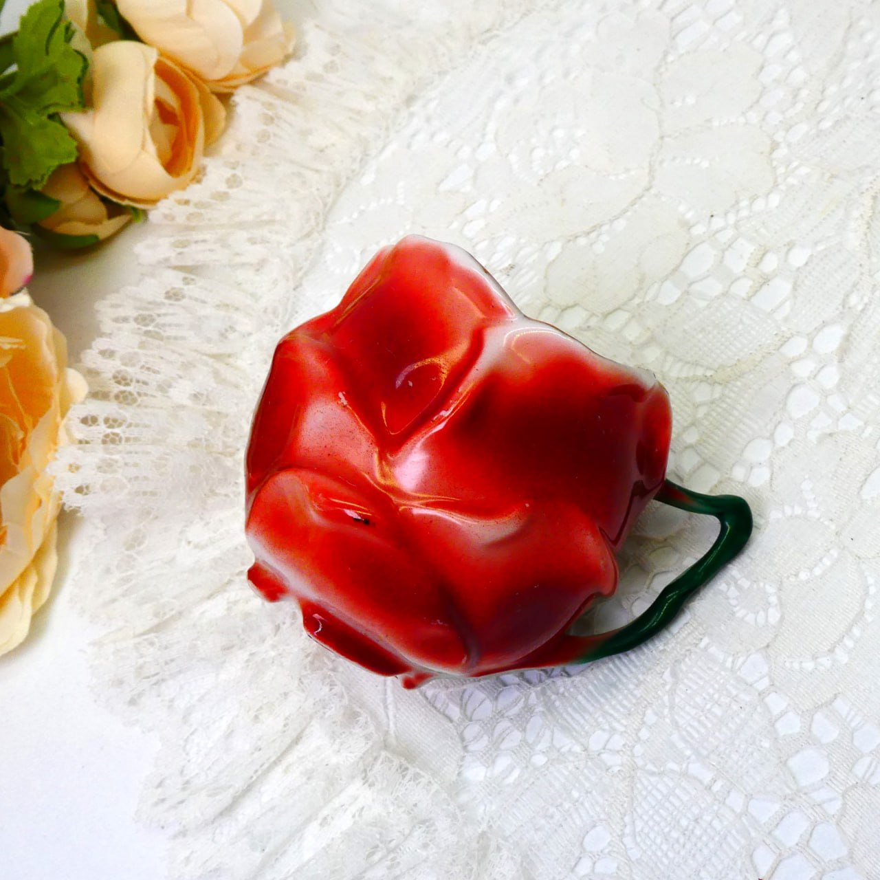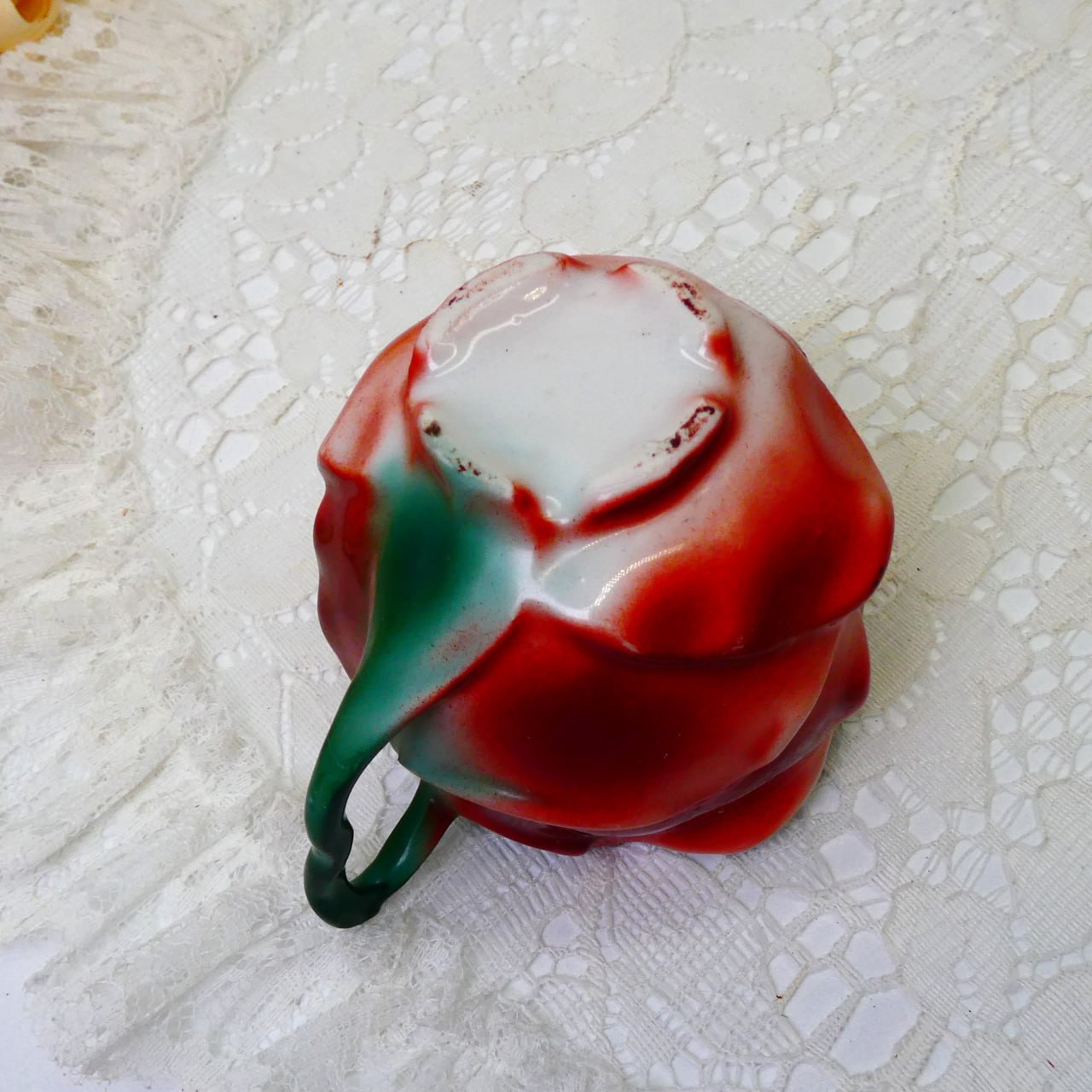Антикварная чашечка в виде бутона розы. Очаровательная вещица! По позолоте небольшие потертости, на поверхности пара черных точек.