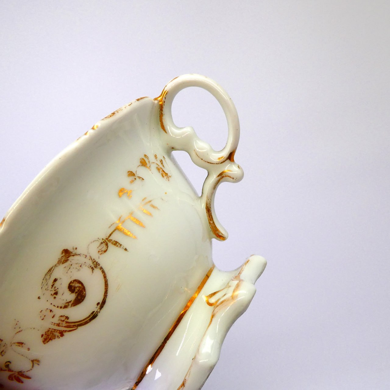 Что ощущаешь, когда держишь в руках антикварную чашку? Ты пьёшь из неё — и чувствуешь: на миг ты не здесь и не сейчас. Ты гость в прошлом, где всё дышит тишиной, достоинством и теплом. И вдруг охватывает удивление: как она уцелела? Как прошла сквозь войны, переезды, потери, новые века — и осталась целой, как память. В продаже антикварная чашка конца XIX века с ручной росписью. И пусть позолота частично стерта, но на этой чашке нет ни скола, ни трещинки, а значит - она еще порадует вас . Изящная ручка, основание на юбочке, вех с широким раскрытием.