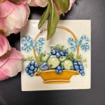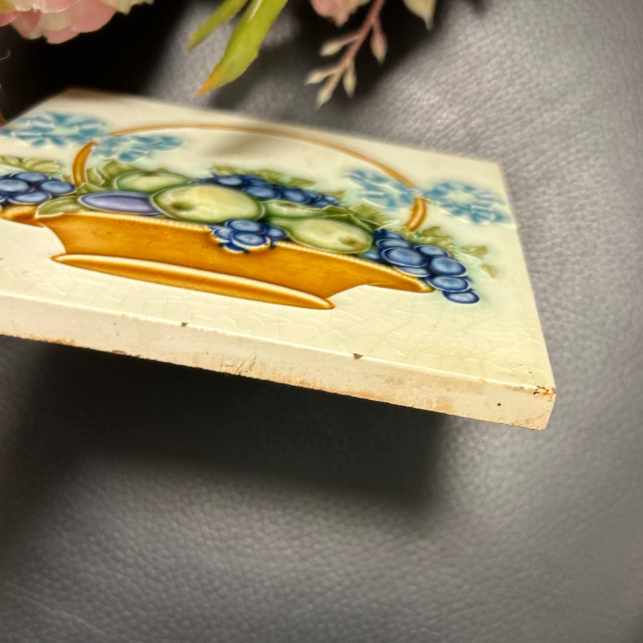 Хоть в рамку вставляй эту антикварную плитку! Декор объемный, по выпуклостям возможна пара потертостей. Плитка с кракелюром и небольшими сколами на гранях.