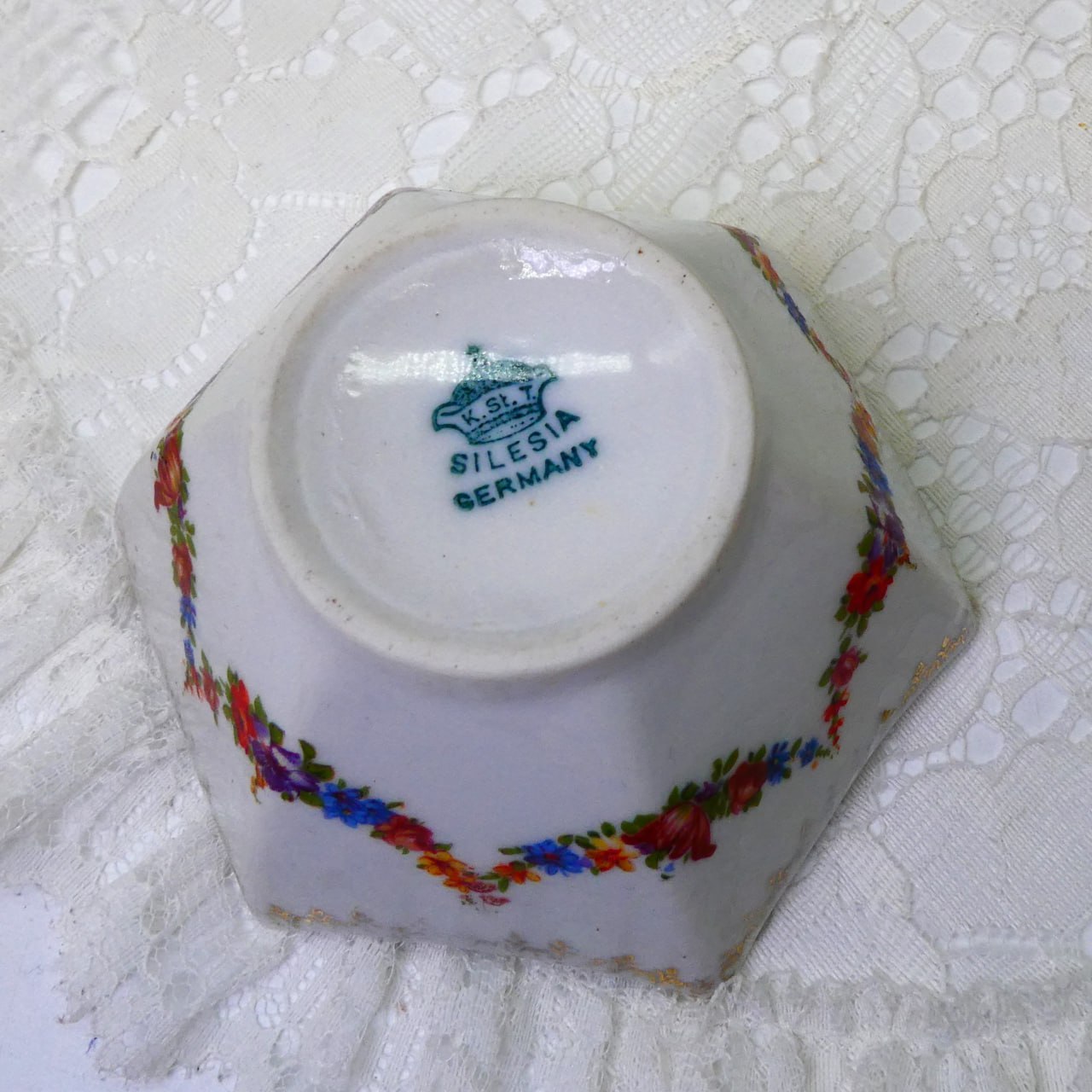 Добавьте в ваш дом частичку истории с этим великолепным предметом! Данная фарфоровая вещица использовалась ,скорее всего, как сахарница для кускового сахара. Завод "Porzellanfabrik K. Steinmann Tiefenfurt" в Тифенфурте (Силезия) выпускал фарфоровые изделия в 1883 - 1943 годах. В наличии антикварная сахарница с деколью в виде цветочных гирлянд и позолотой по краю (возможны потертости позолоты).