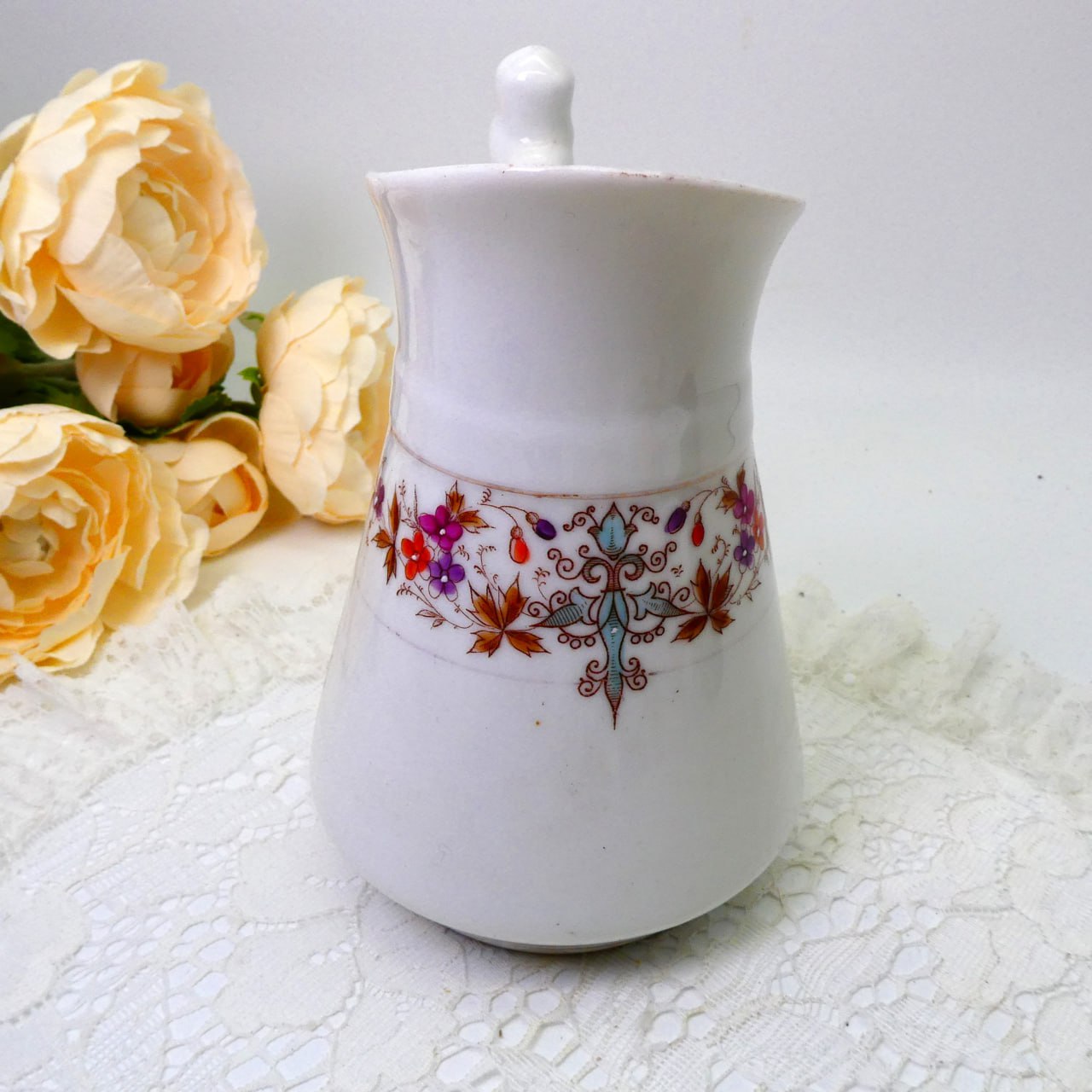 Антикварный молочник с ручкой-палочкой. По позолоте небольшие потертости.