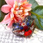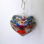 Расписное стеклянное декоративное сердце. Без сколов, без трещин.