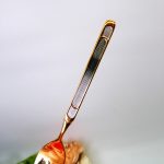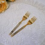 Пара десертных вилочек. Металл, скорее всего, позолоченный. Длина 14см. Продаются вместе.