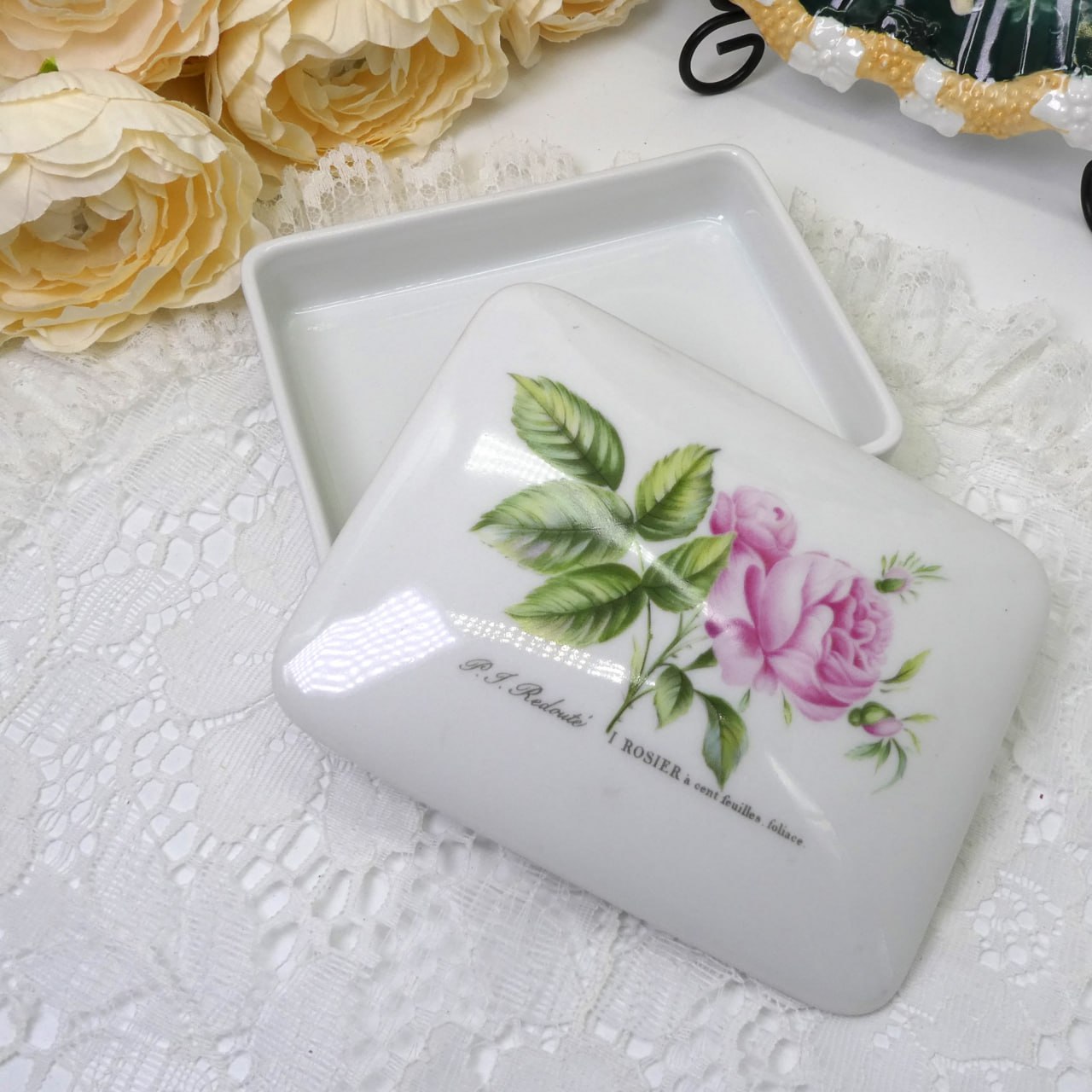 Фарфоровая шкатулка простой, но элегантной формы, с нежной деколью. Сохранность хорошая.