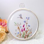Винтажная фарфоровая подставка для чайника с нежной деколью. Подставка без сколов, без трещин, со следами пользования в виде мелких царапинок на поверхности.
