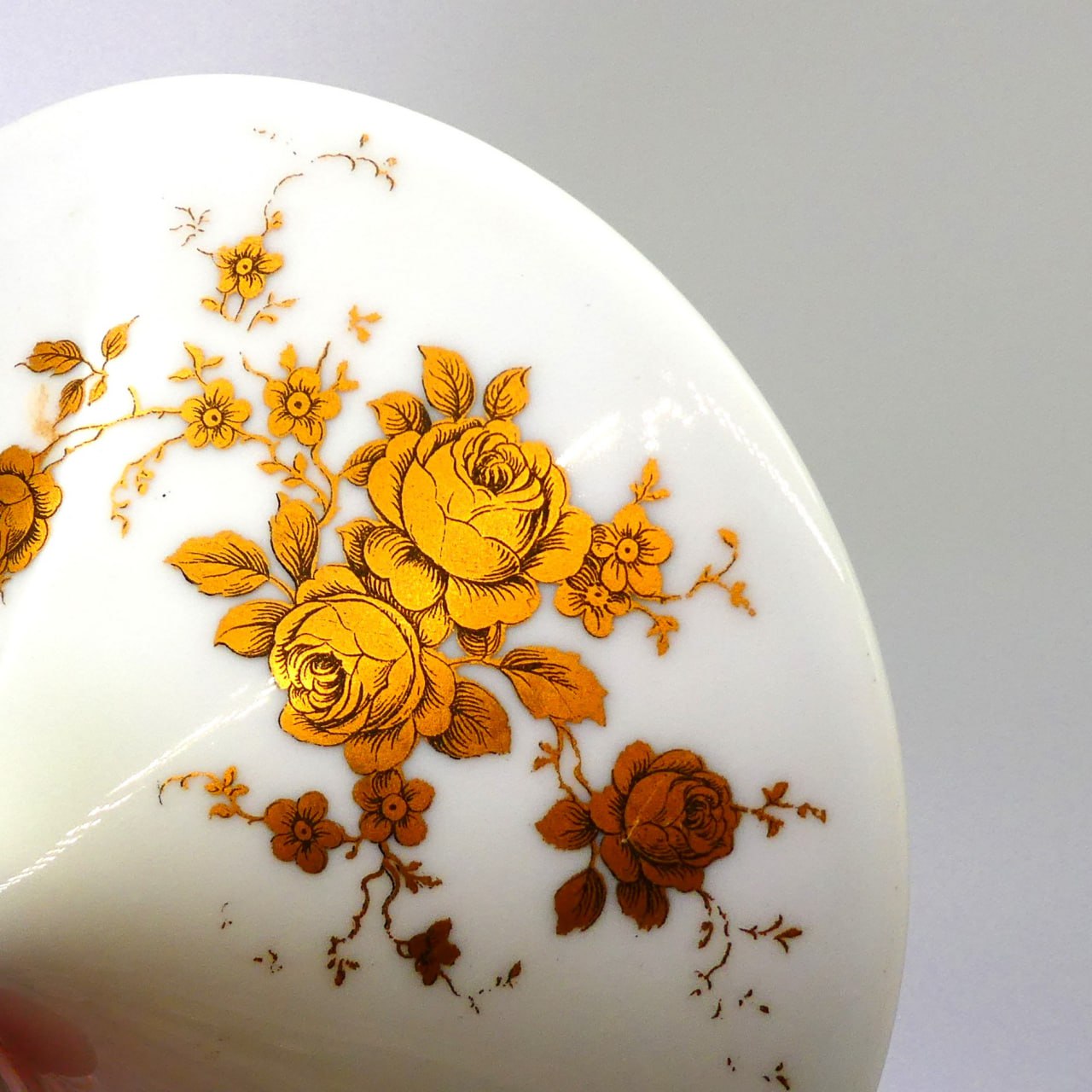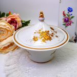 Очаровательная винтажная фарфоровая шкатулка. На ручке есть потертости позолоты, в остальном сохранность хорошая.