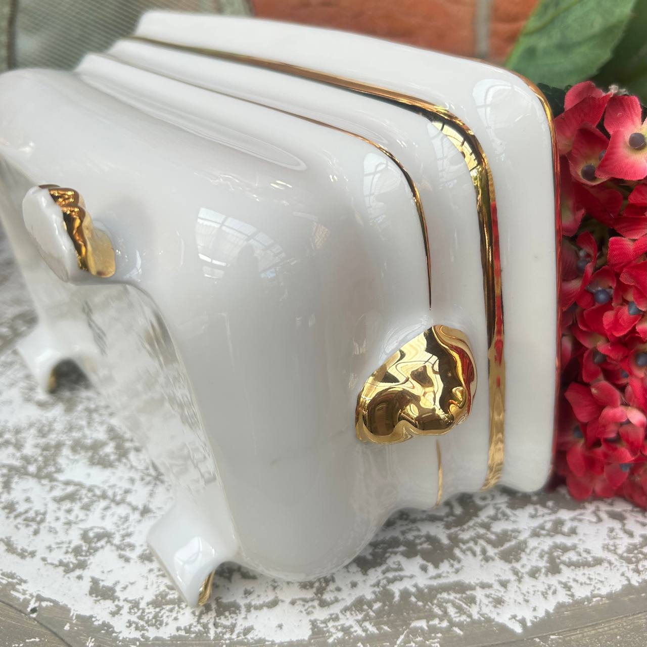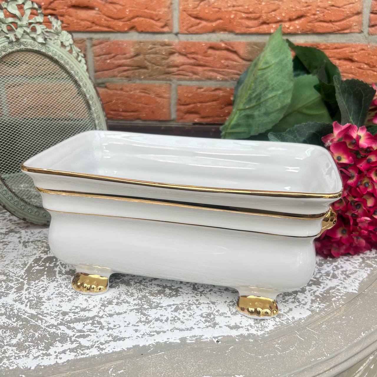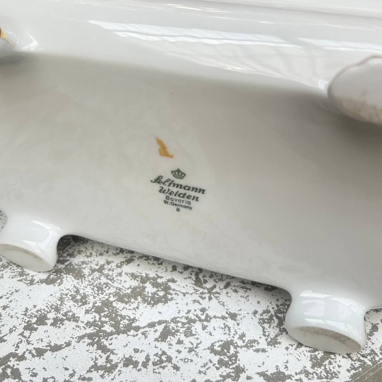 Интересной формы фарфоровое кашпо сразу для двух горшочков с цветами!
