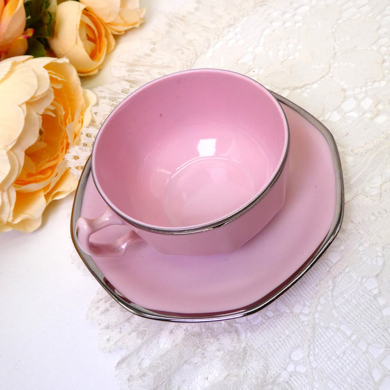 Очаровательное сочетание нежного розового цвета и серебряной отделки. Кофейная чашечка HAVILAND.