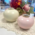 Комплект из двух винтажных вазочек пастельных цветов. Одна вазочка диаметром 11см, высотой 9 см, другая диаметром 8 см, высотой 7 см.
