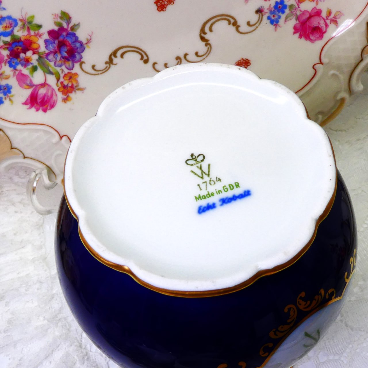 Очаровательная вазочка - кобальт, позолота, мейсенский букет.
