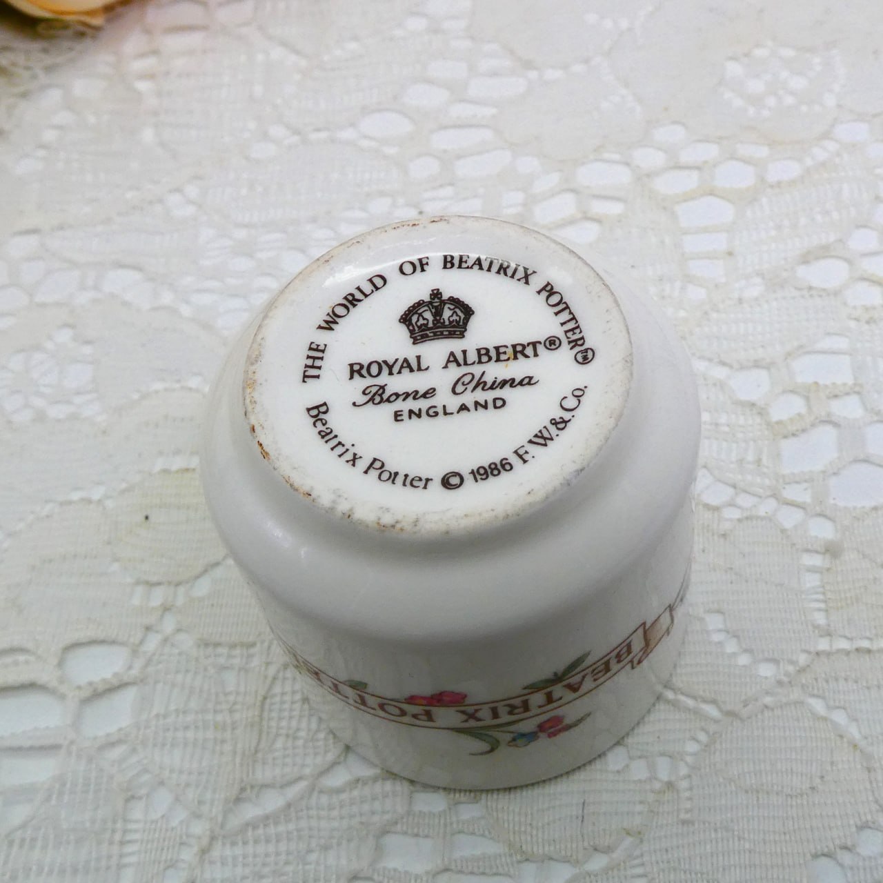 Подставка для яйца, предмет из коллекции The World of Beatrix Potter от Royal Albert (England), из тонкого костяного фарфора (Bone China). Нежный дизайн с персонажем Tom Kitten. Диаметр 5см, высота 5см. Сокровища, которые мы продаем, не новые, они винтажные и прожили прошлую жизнь. Поэтому имейте в виду, что могут присутствовать незначительные несовершенства и недостатки. Пожалуйста, внимательно изучите фотографии перед покупкой.