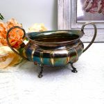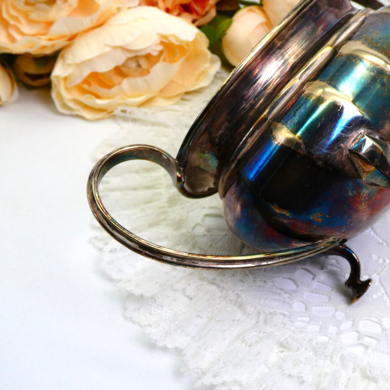 Какие ножки! Винтажная английская сахарница Art Deco, 1920–40-е. Изделие выполнено из металла с серебряным покрытием (EPNS – Electro Plated Nickel Silver). Хорошее винтажное состояние. Есть следы времени, потёртости и патина покрытия. Ширина с учетом ручек 18см, высота с учетом ножек 10см. Сокровища, которые мы продаем, не новые, они винтажные и прожили прошлую жизнь. Поэтому имейте в виду, что могут присутствовать незначительные несовершенства и недостатки. Пожалуйста, внимательно изучите фотографии перед покупкой.