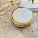 Элегантная шкатулка цвета айвори с золотой каймой. Диаметр 12 см.