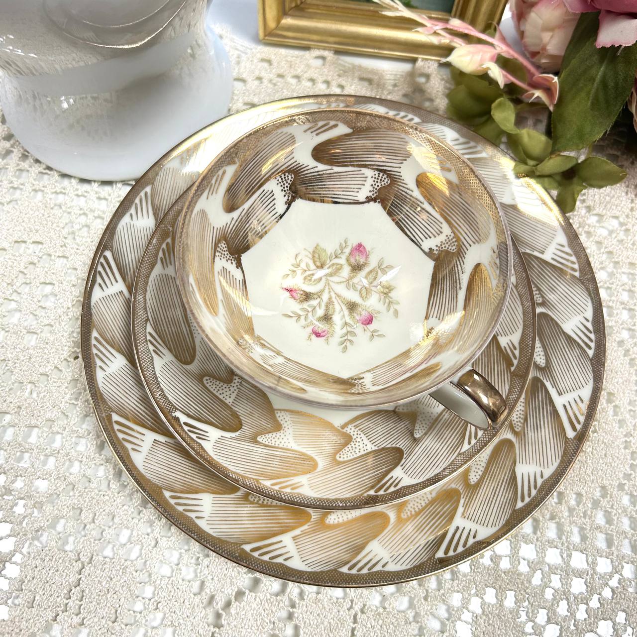 Щедро позолоченное трио от мануфактуры Winterling. Хорошая сохранность, возможны небольшие потертости по позолоте.