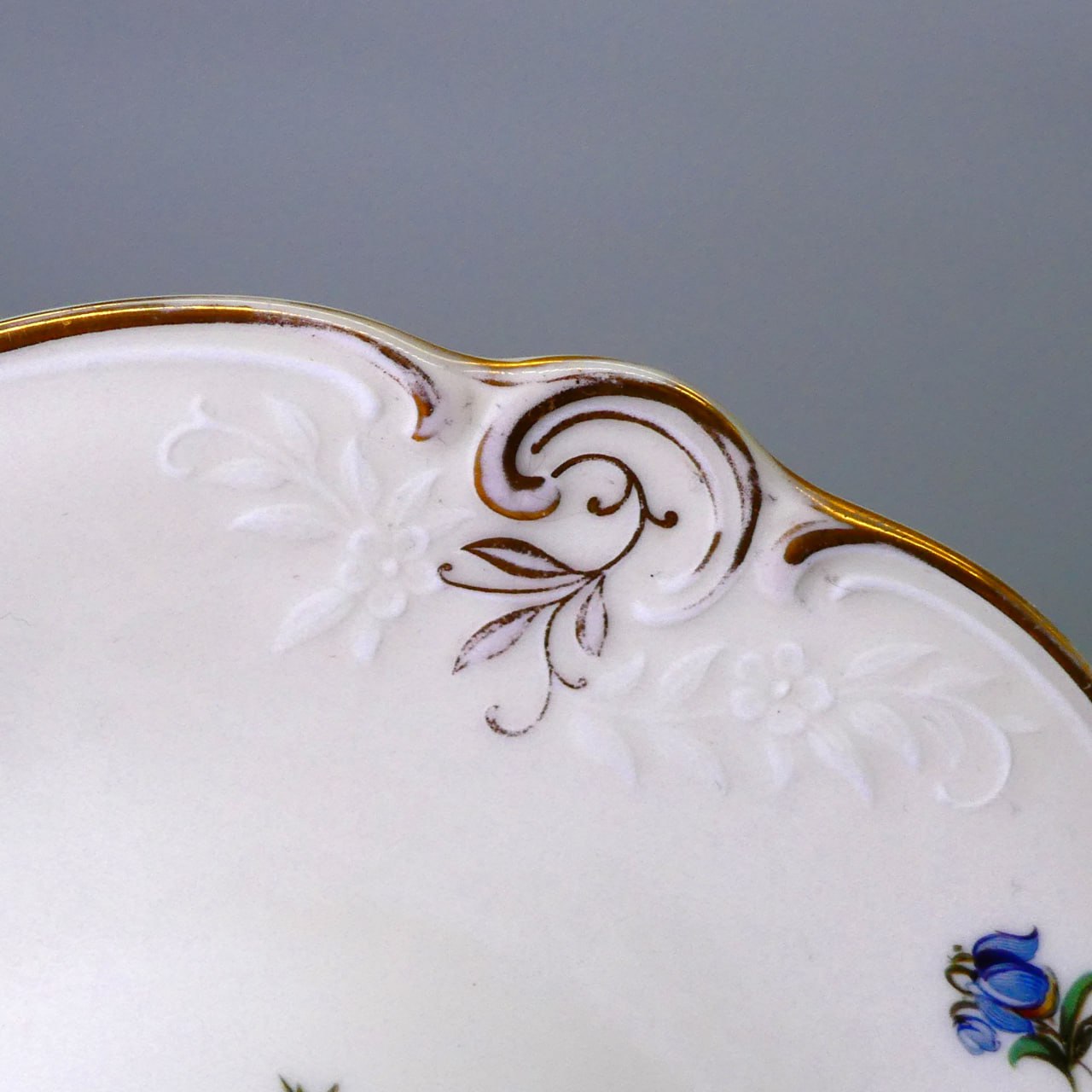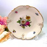 Винтажная фарфоровая сухарница с цветочной деколью. По позолоте есть потертости.