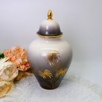 Изящная винтажная ваза из тонкого баварского фарфора с плавным градиентом от молочно-белого к графитово-серому и тонким золотым декором.